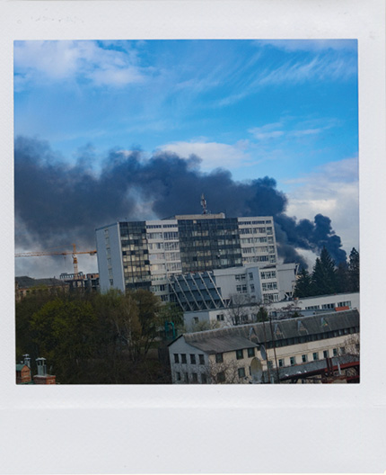 Alors que le travail décrit littéralement l’évacuation soudaine de ma famille et les conséquences de cette brutale attaque Russe, il cherche aussi à remettre en question le langage de la photographie lui-même et ses limites en matière de documentation, de représentation et d’impact sur les conflits.